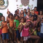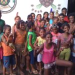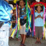 Em 1945, Pai Euclides, então com 8 anos, pulava a janela de sua casa no Caratativa para ver o Boi de Viana, o primeiro do sotaque de Baixada que chegara à Ilha. Ficava mexido, diz que anestesiado, parece que aquilo me conduzia sem eu querer… já entrava em transe desde de os 6 anos de idade, vocação precoce e imperiosa, que o tomava na rua, na escola e o levou em anos difíceis por médicos e hospitais até que, contra a vontade de sua mãe, foi levado ao Terreiro do Egito, onde completou sua feitoria em 1950, iniciado ali a trajetória que o tornaria um dos sacerdotes mais respeitados do país. Em 1953, aos 16 anos, a fama de curador de Euclides Talabyan já se espalhava, e a casa de sua tia Isaura se enchia de gente que vinha à procura de benzimentos, remédios, trabalhos. Nesta época um grupo já o acompanhava, amigos, clientes, mulheres que recebiam encantados durante os trabalhos de cura, e que se tornariam mais tarde suas filhas de santo. Era 23 de junho, e sem que se planejasse, Corre Beirada, seu encantado, pegou um boizinho pendurado numa vara, começou a cantar toadas, e entendeu de sair brincando pelas casas do bairro do Cavaco, atual Bairro de Fátima, com seus garotos – os encantados manifestados em suas filhas – e seu povo. Nascia aí o bumba meu boi Garotos da Baixada. Se tornou tradição Saía todos os anos, seguiu a fundação da Casa Fanti Ashanti no sítio do Gapara, e quando o terreiro se estabeleceu no Cruzeiro do Anil, em 1964, o grupo ganhou novo nome: Garotos do Cruzeiro, e também um boi maior com uma criança embaixo. Nesta época o boi chegava a reunir duzentas pessoas, adultos, crianças, encantados, em cortejo pelas ruas do bairro. Vieram as novas gerações, seus filhos, netos, e hoje o boi é formado pelas crianças e adolescentes da comunidade da Casa. E pelos garotos que sempre acompanham.